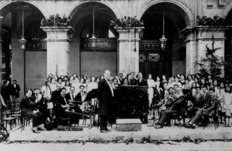 Bonnal entouré des membres du Quatuor Calvet. Au premier plan, de droite à gauche: J. Calvet, Bonnal, Jean Dupouy. Au second plan: M. Recasens, Jean Champeil, Janine Dupouy, M. Cohort. Ermend Bonnal mourra à Bordeaux le 14 août 1944, quelques jours après sa visite à Saint Sever.