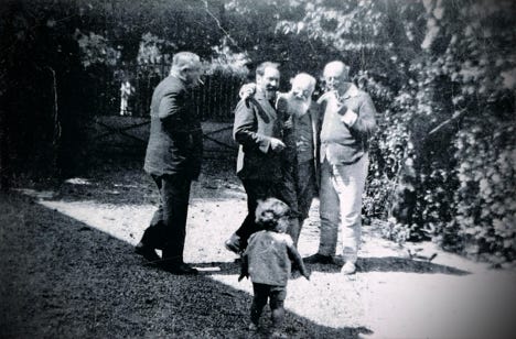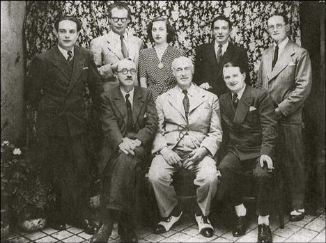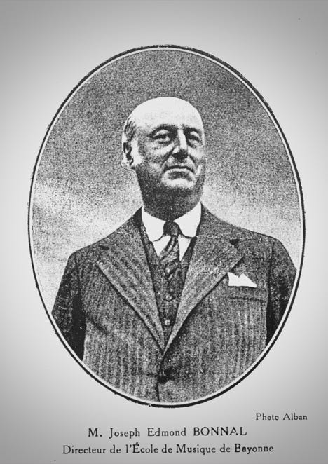 Bonnal entouré des membres du Quatuor Calvet. Au premier plan, de droite à gauche: J. Calvet, Bonnal, Jean Dupouy. Au second plan: M. Recasens, Jean Champeil, Janine Dupouy, M. Cohort. Ermend Bonnal mourra à Bordeaux le 14 août 1944, quelques jours après sa visite à Saint Sever.
