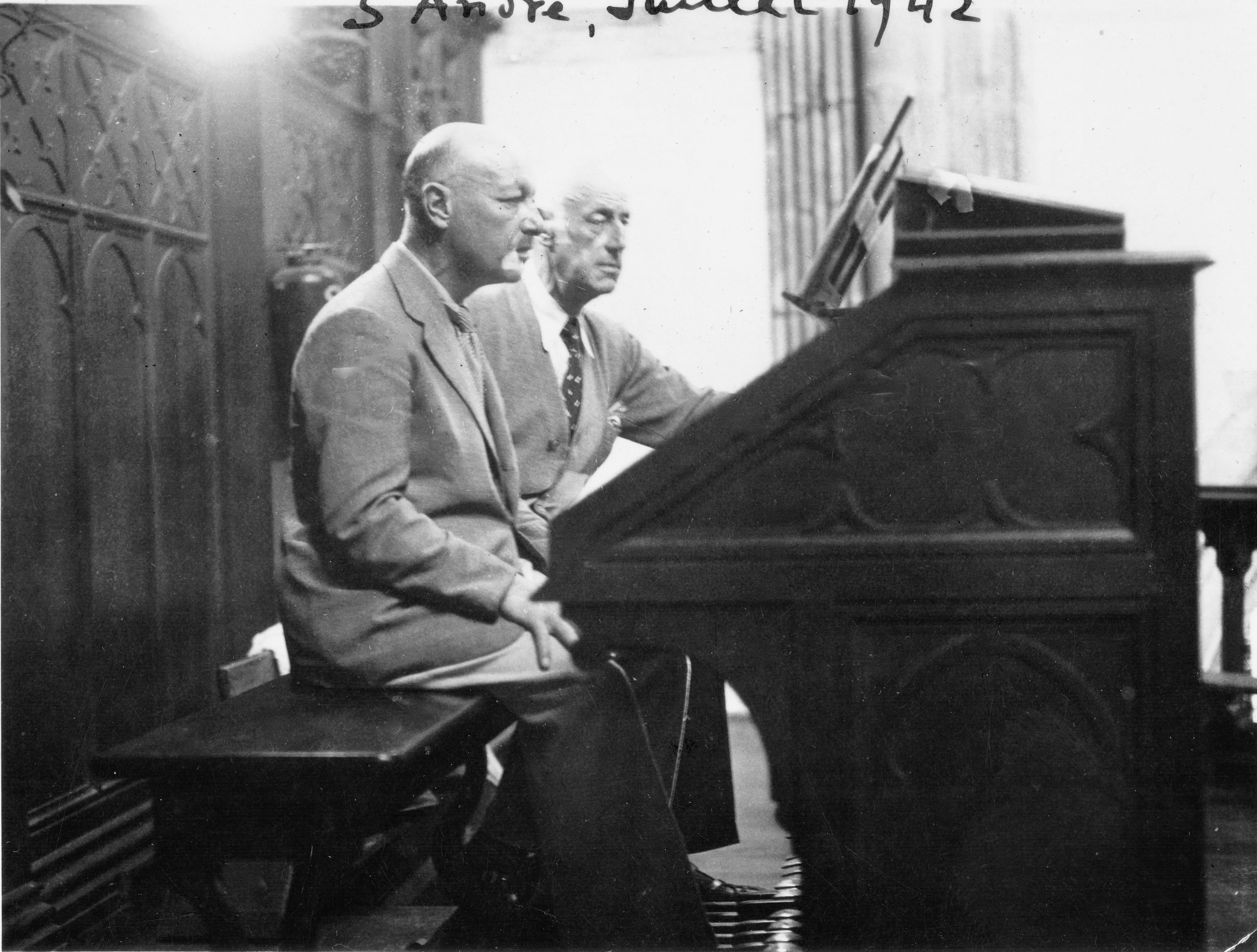 À l’Orgue de l’église Saint-Etienne, à Bayonne, dont il devient le titulaire le 27 septembre 1933. Ici avec son ami le Comte Christian d’Elbée, auquel il dédicace « La Vallée du Béhorléguy au Matin »