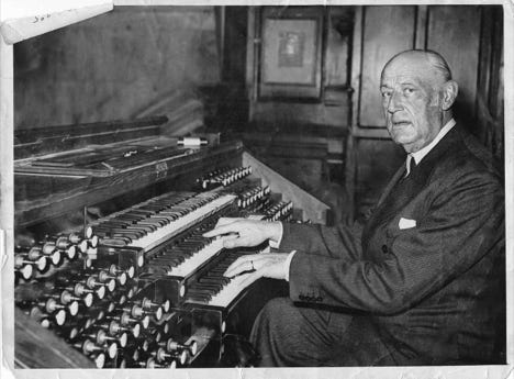 Photo officielle d’Ermend Bonnal à l’Orgue de l’église de Sainte-Clotilde, à Paris, dont il devient le titulaire en 1942